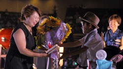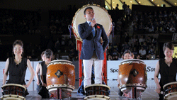 いつもご指導いただいている女性和太鼓奏者 原田嘉子さんとともに、全身全霊の演奏を観ていただきました。