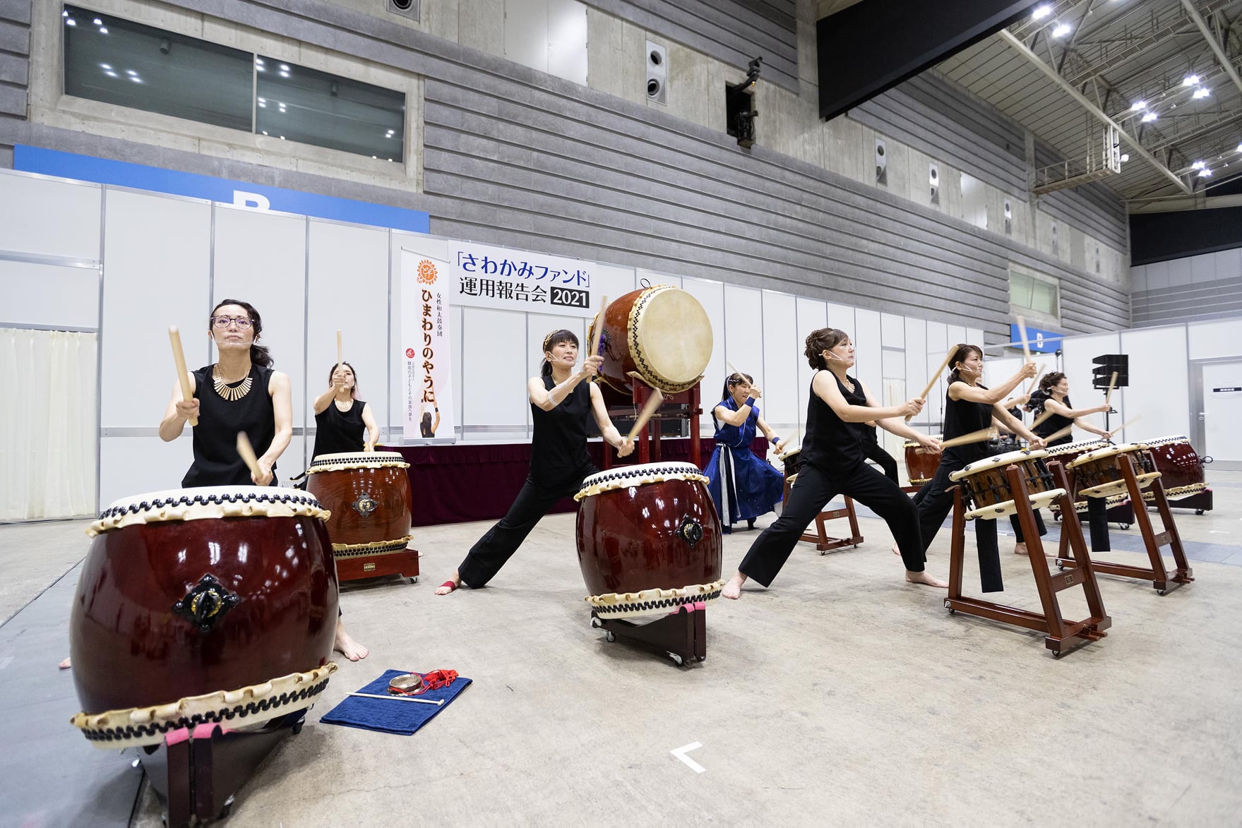 先日、さわかみ投信運用報告会において、女性和太鼓奏団「ひまわりのやうに」が演奏する機会をいただきましたので、ご報告させていただきます。