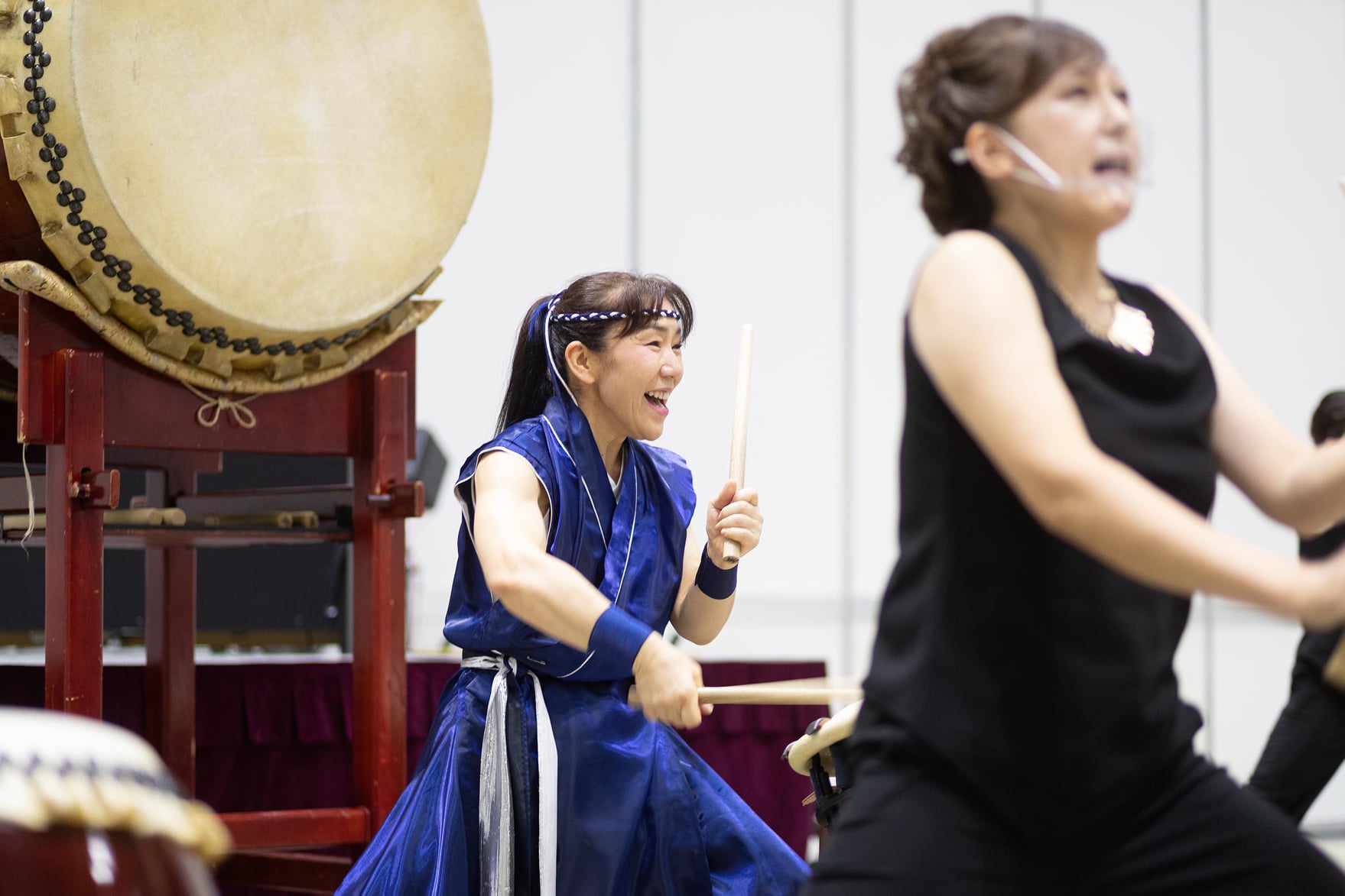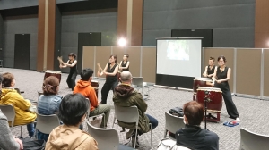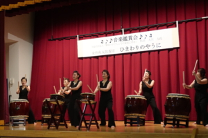 会場では、大太鼓の音が会場に鳴り響くと、観客の視線が私たちに集まり、宛ら、スポットライトの中で演奏をしているようで、演奏後は大きな拍手をいただきました。