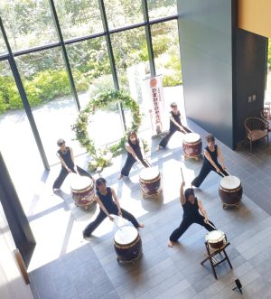 ホテルのご協力もあって、開放的な広いロビーでの演奏が叶い、楽しみに聴きに来て下さった方はもちろん、その場に偶然訪れて聴いてくださったみなさまにも【ひまわりのやうに】の太鼓の音色を堪能していただけたのではと思います。